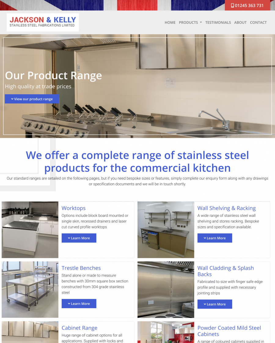 The directors at Jackson & Kelly Ltd. recognised that they needed an online presence to promote their specialist commercial catering equipment range.
