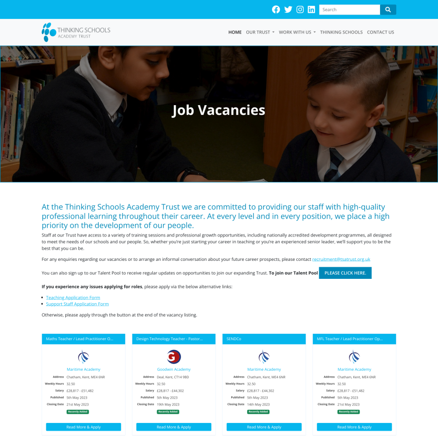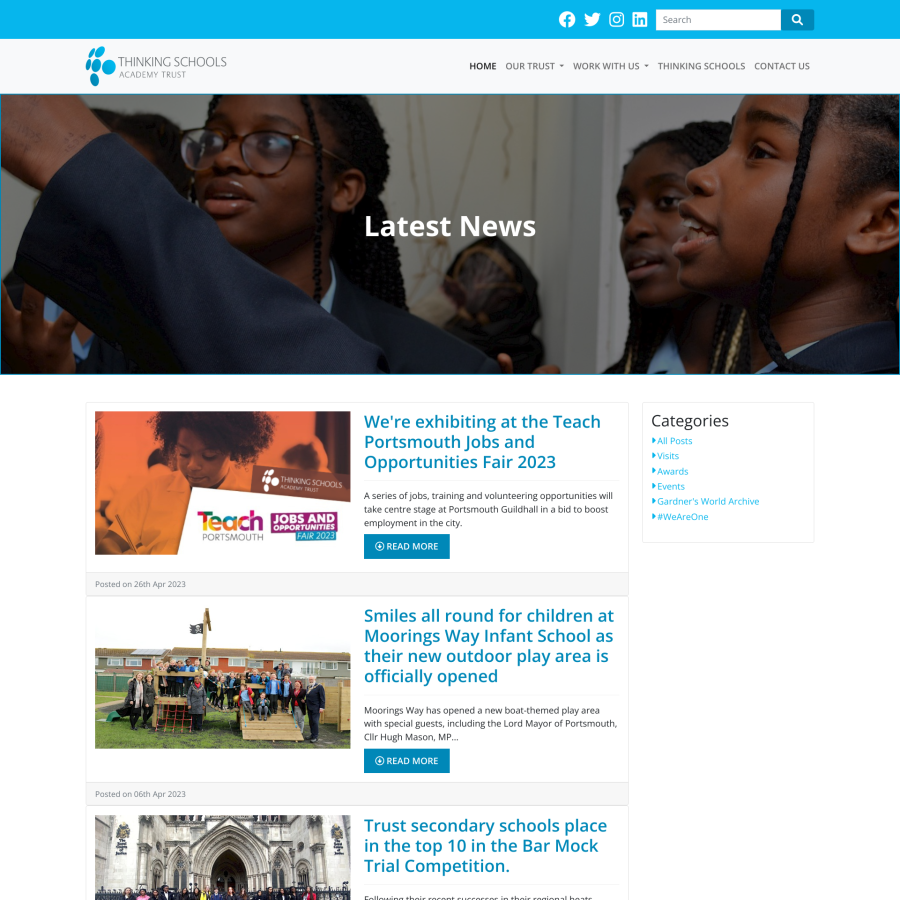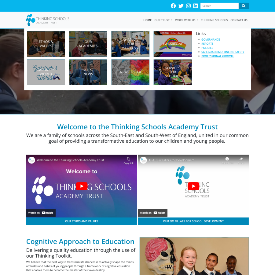 An extensive website with a range of features including a megamenu with images, videos, job vacancies app, image galleries and blog. The Trust comprises over 20 schools, all of which have websites created by us.