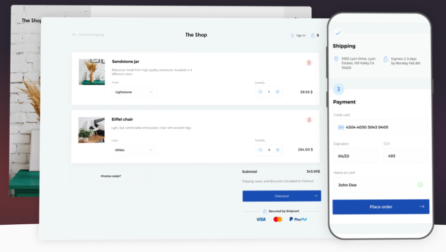 Snipcart is a powerful shopping cart platform. You can use it to add custom e-commerce functionality to your existing website or web application.